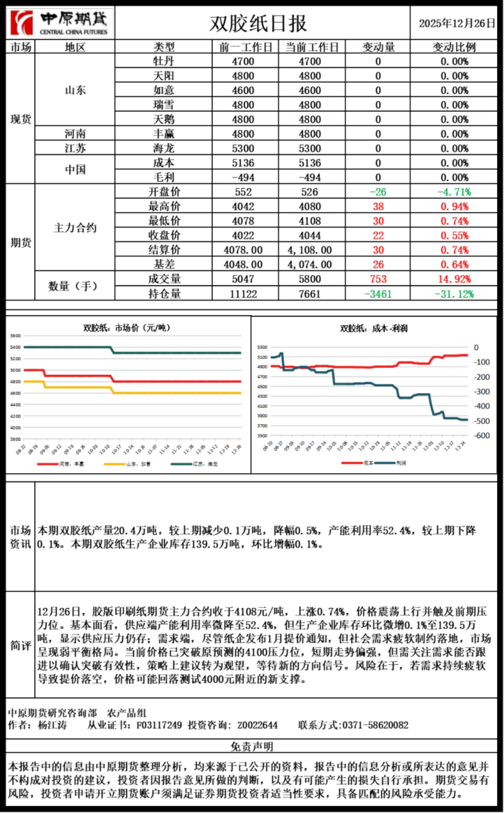 双胶纸日报20251226