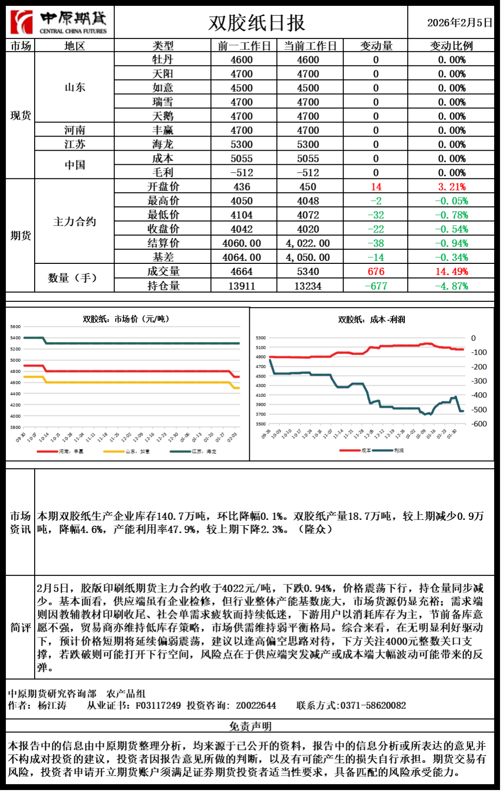 双胶纸日报20260205
