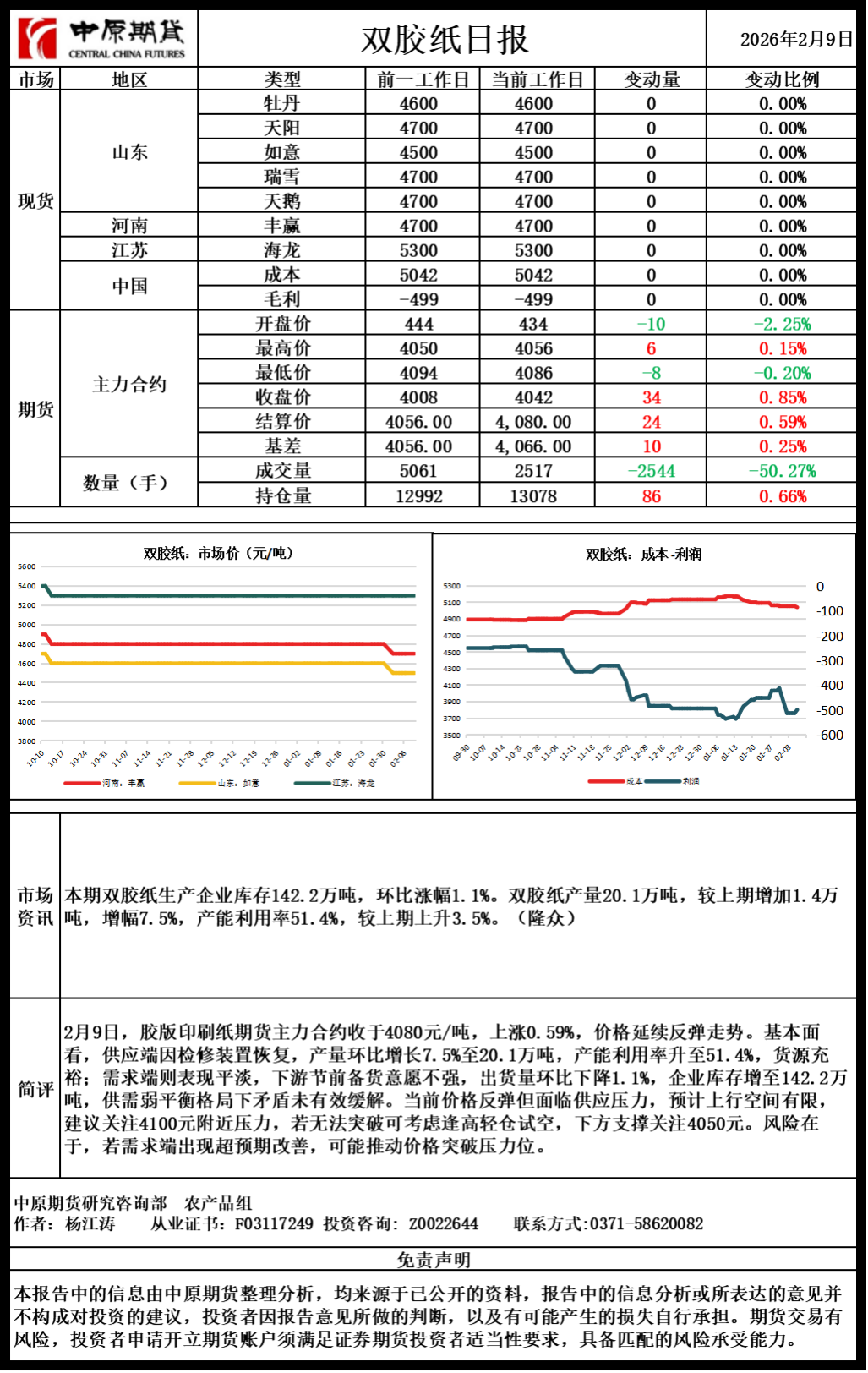 双胶纸日报20260209