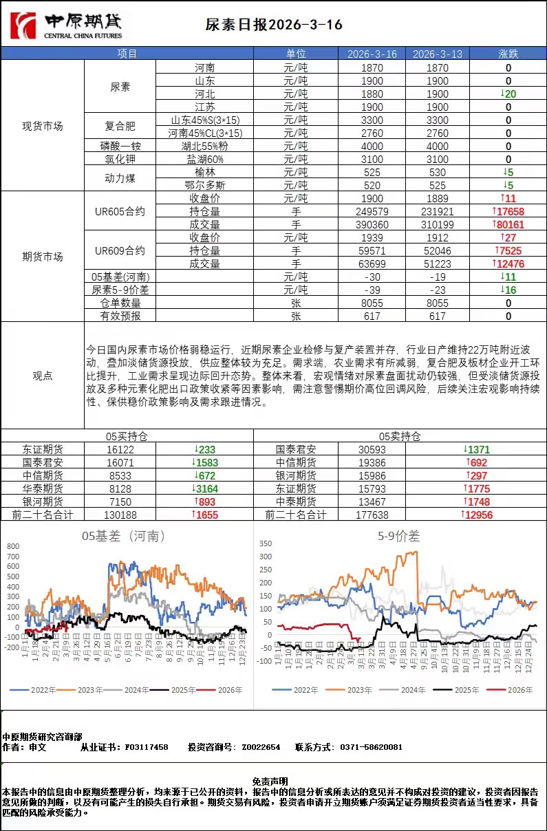 尿素日报20260316