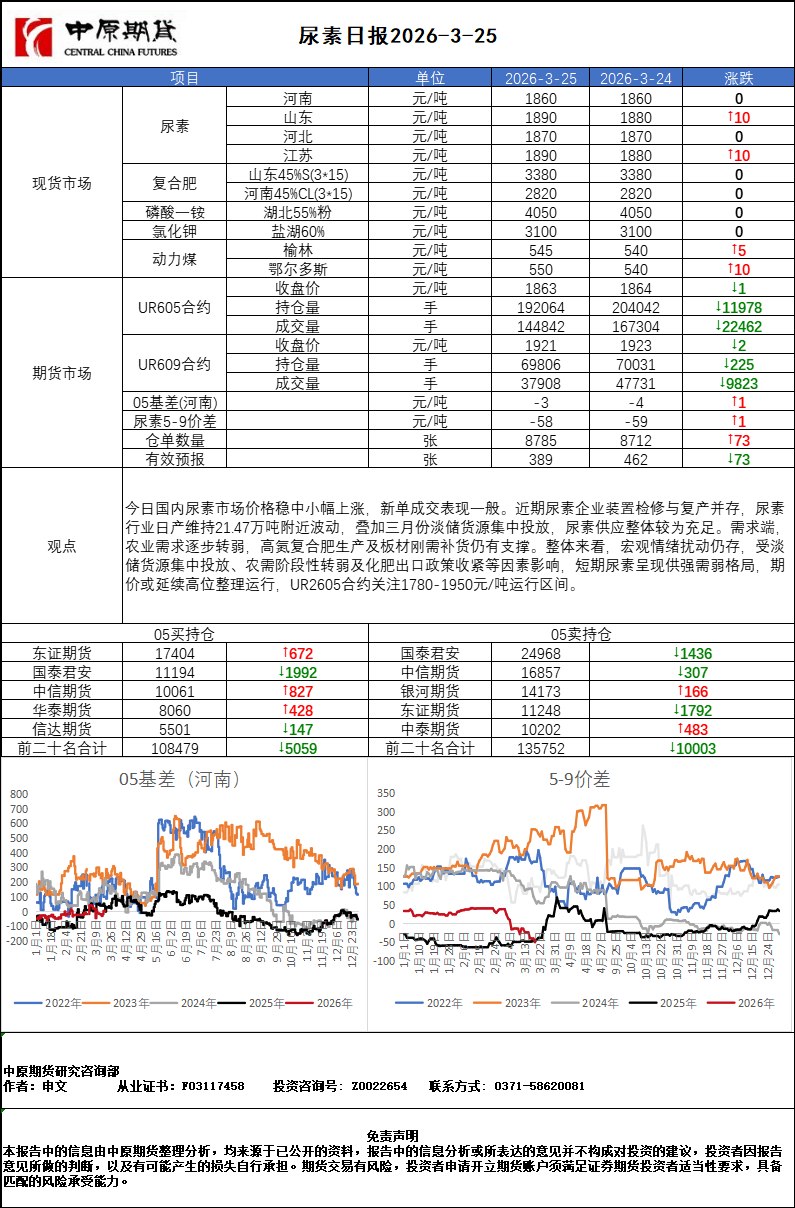 尿素日报20260325