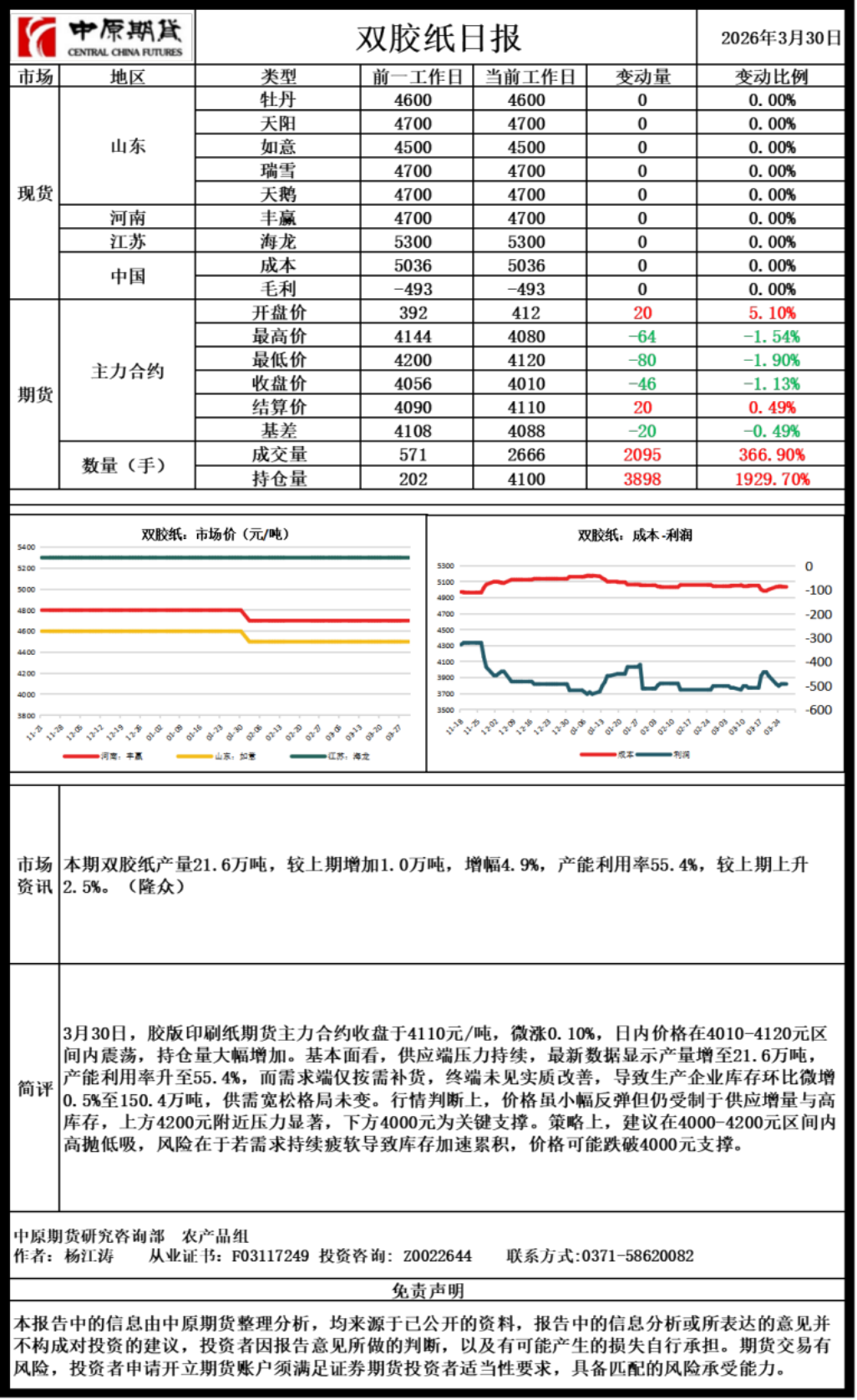 双胶纸日报20260330