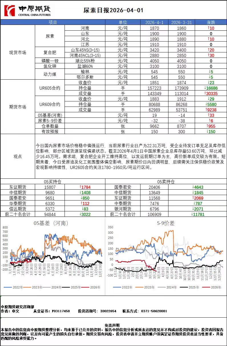 尿素日报20260401