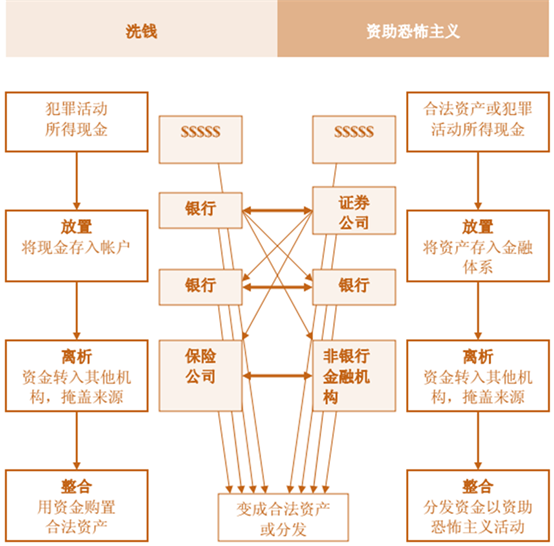 图1.洗钱与资助恐怖融资的具体步骤对比