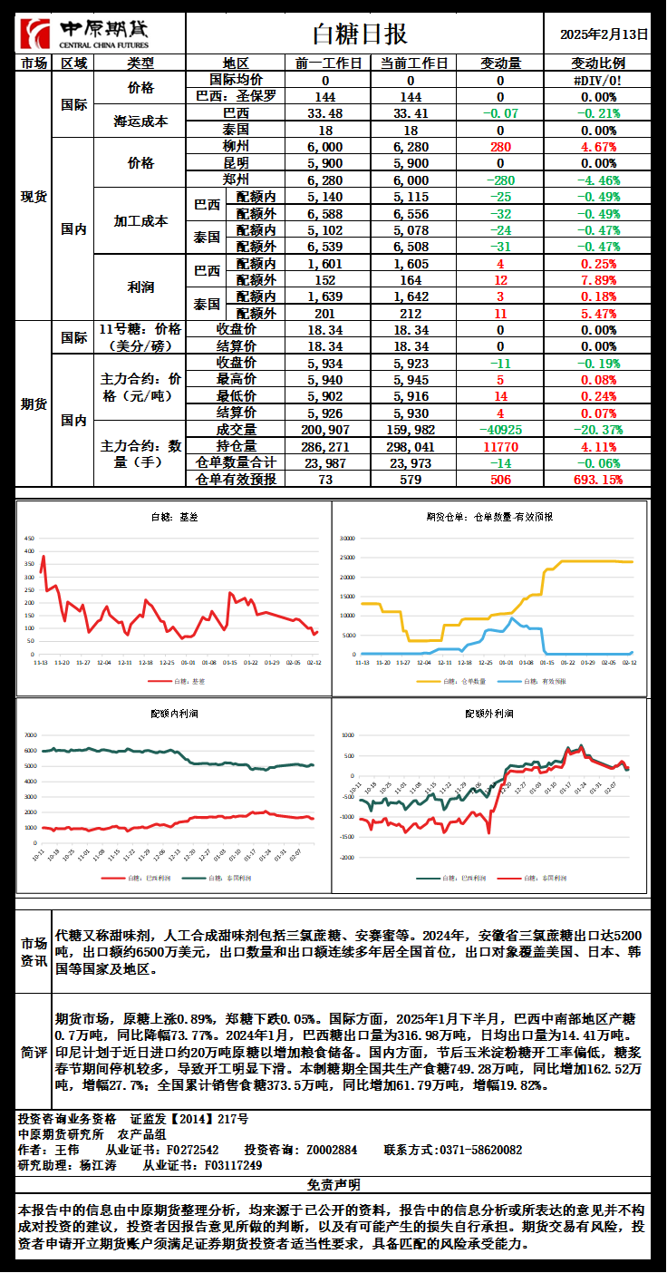 白糖日报20250213