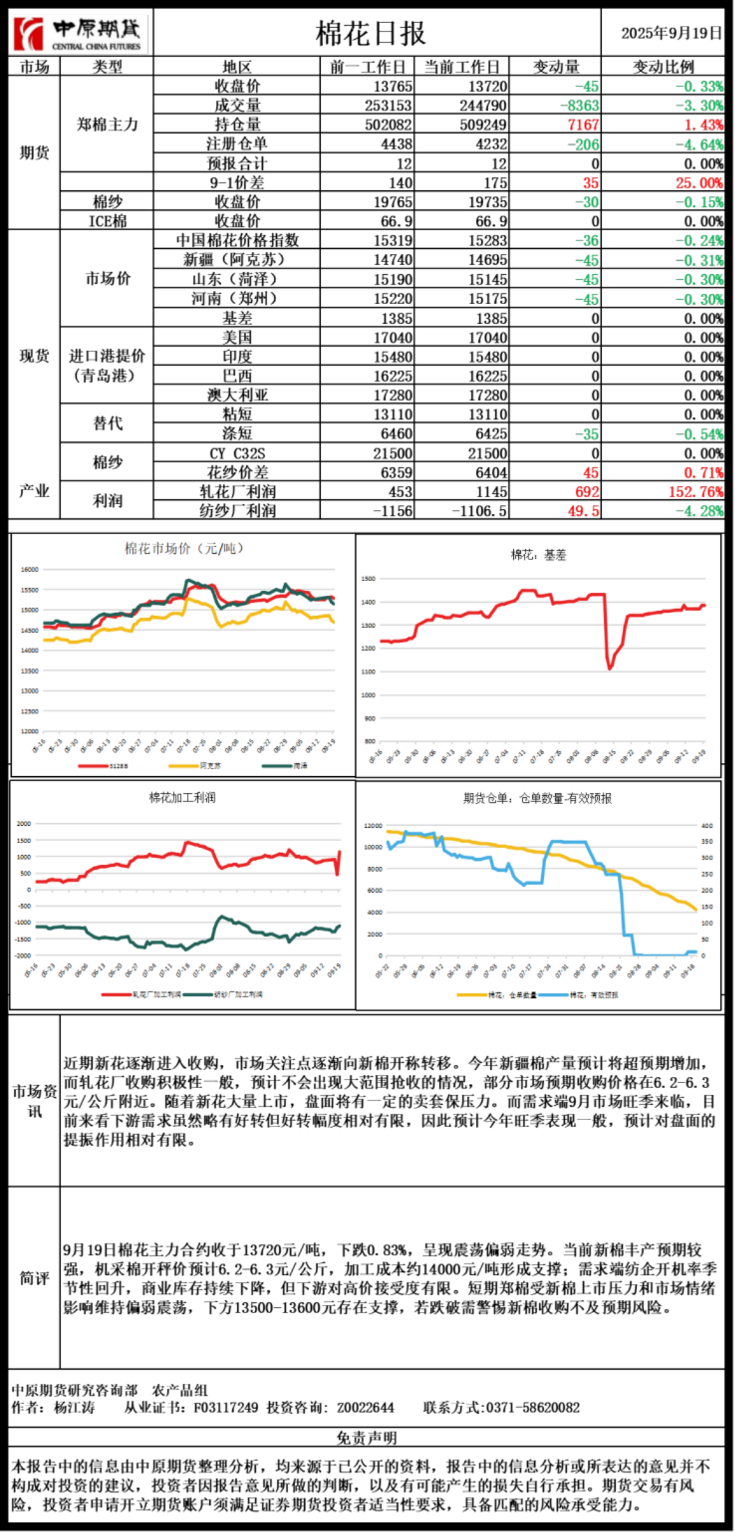 棉花日报20250919