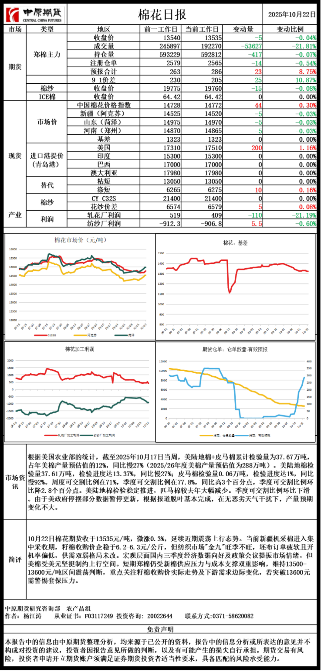 棉花日报20251022