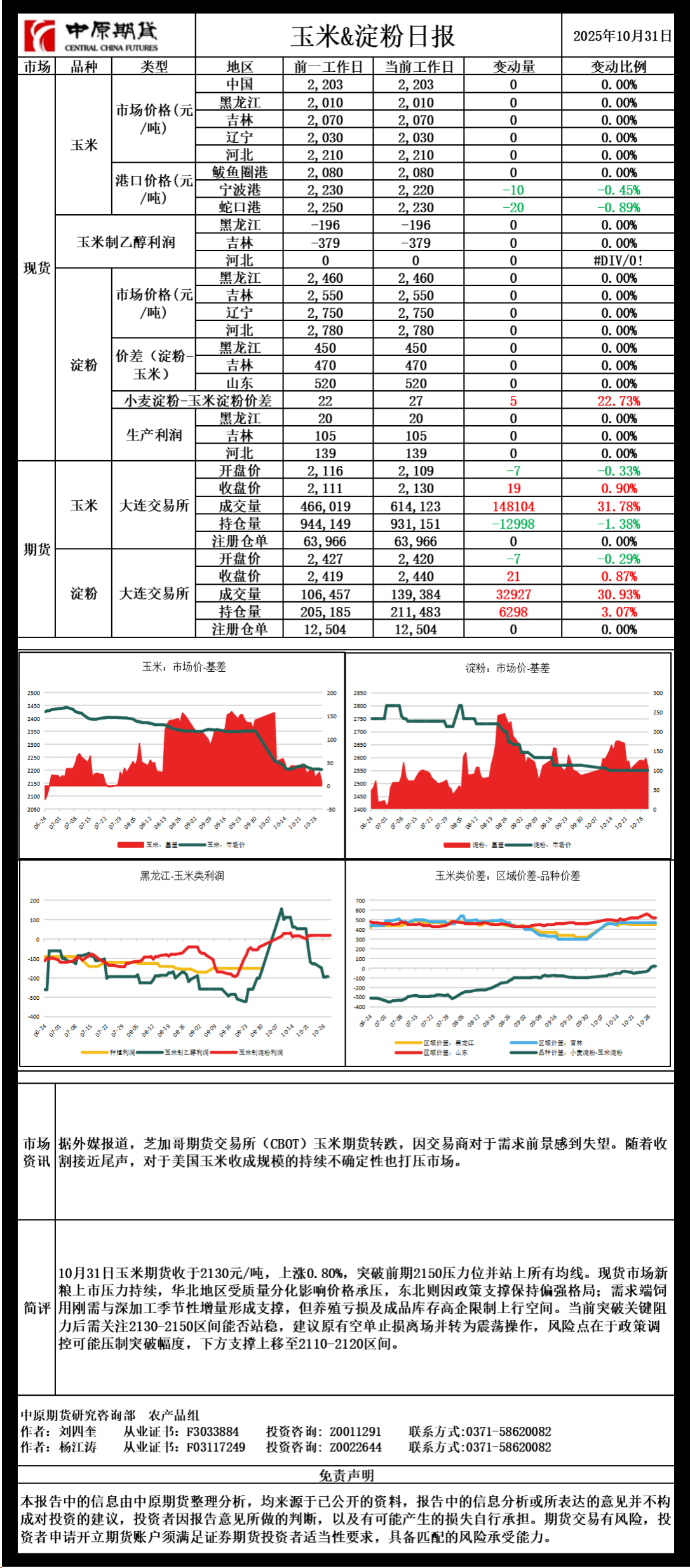 玉米淀粉日报20251031