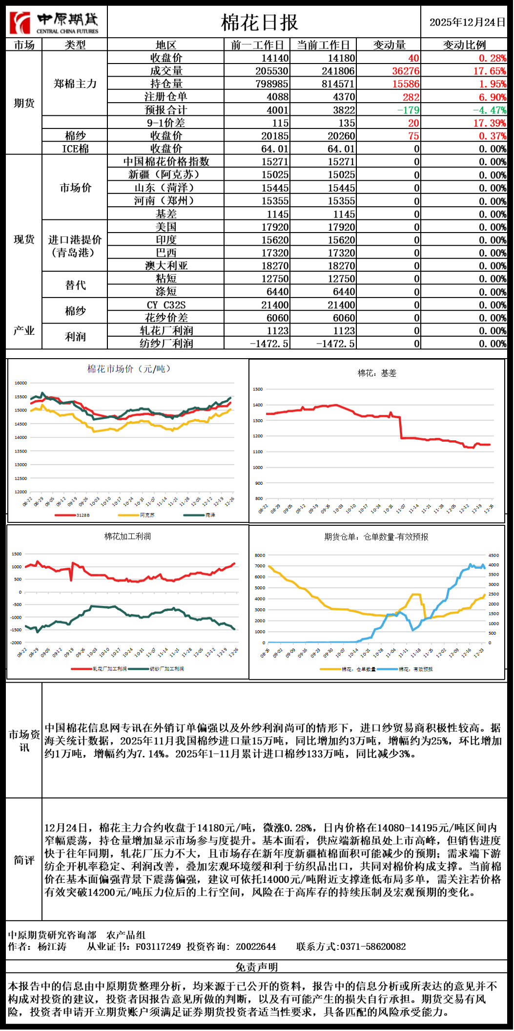 棉花日报20251224