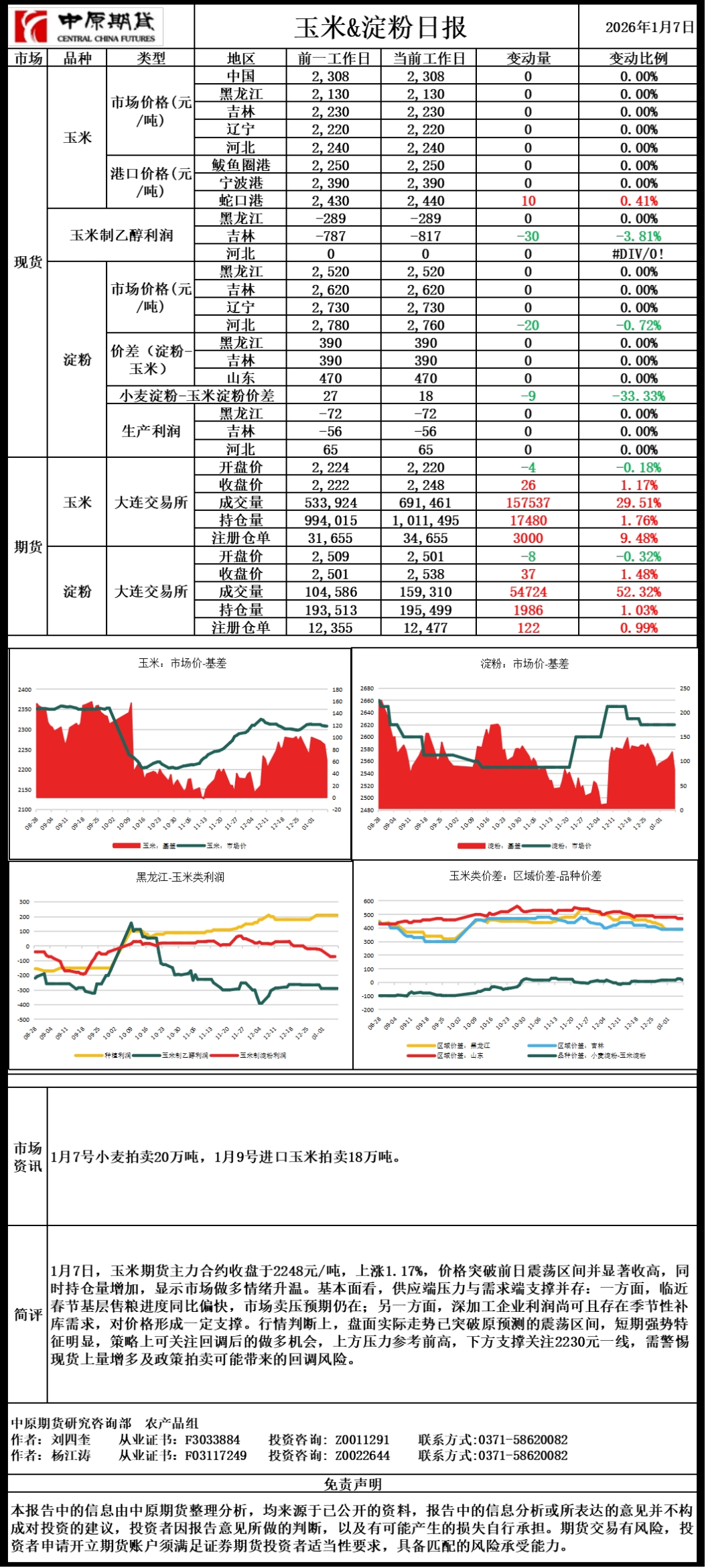 玉米淀粉日报20260107