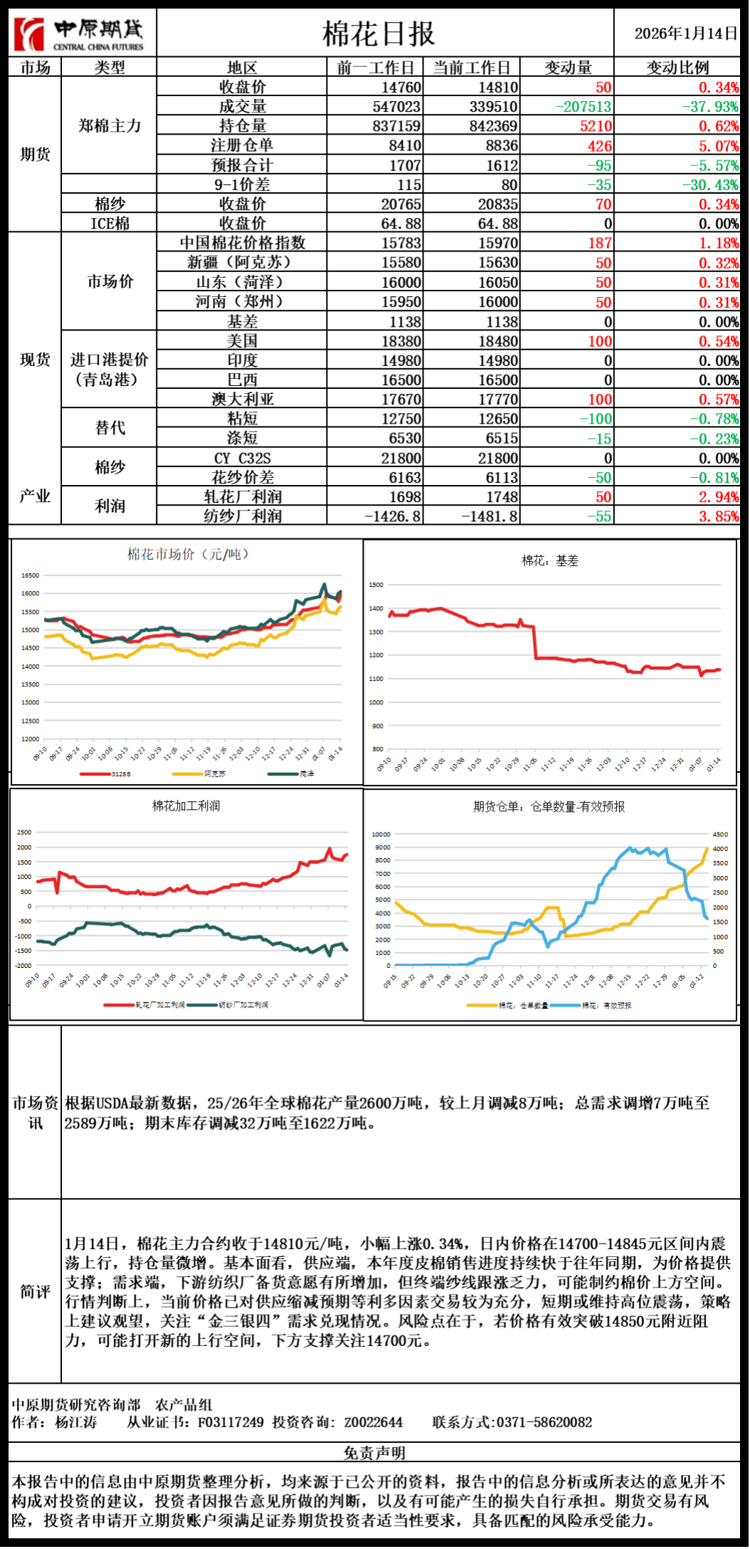 棉花日报20260114