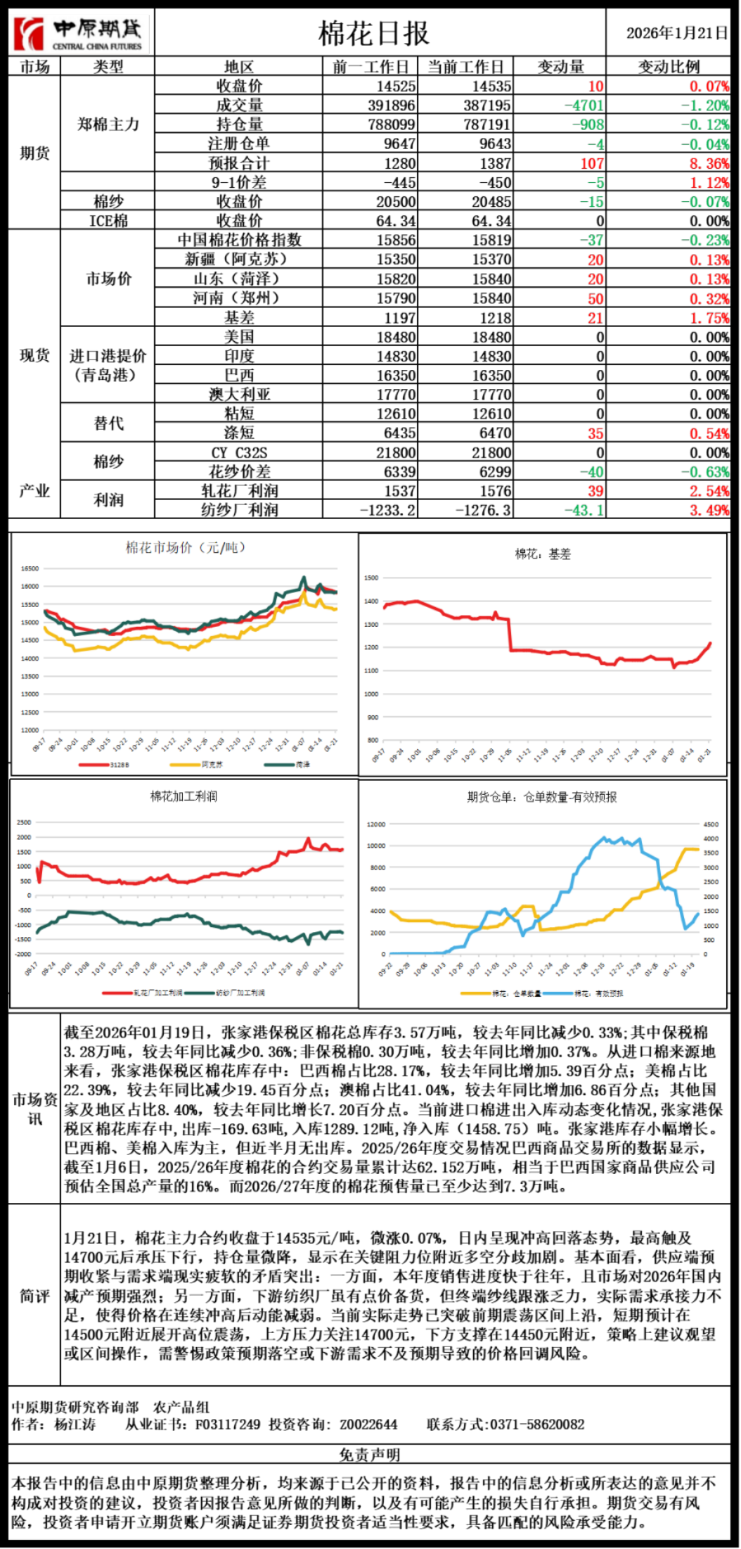 棉花日报20260121