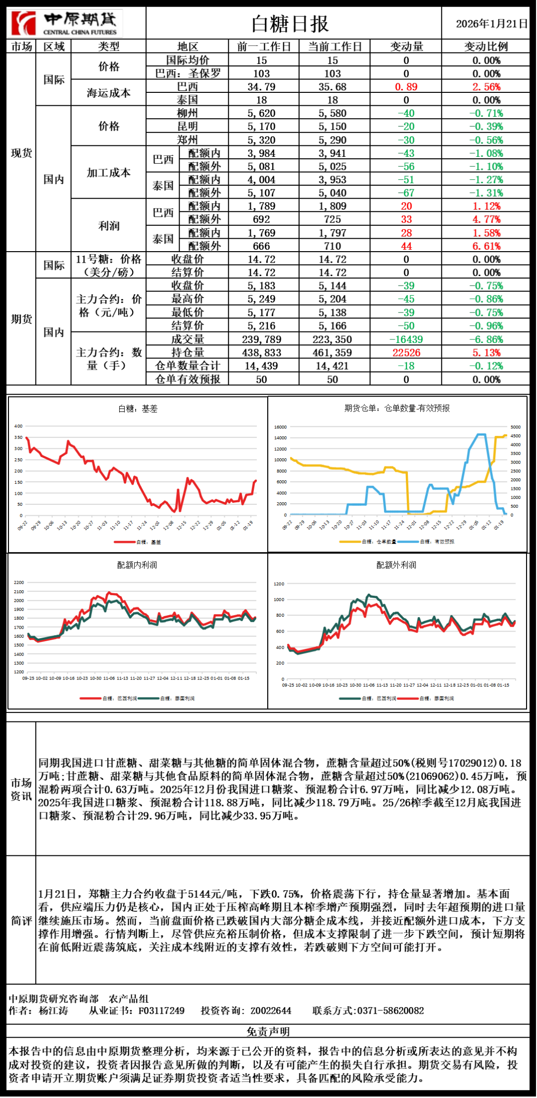 白糖日报20260121