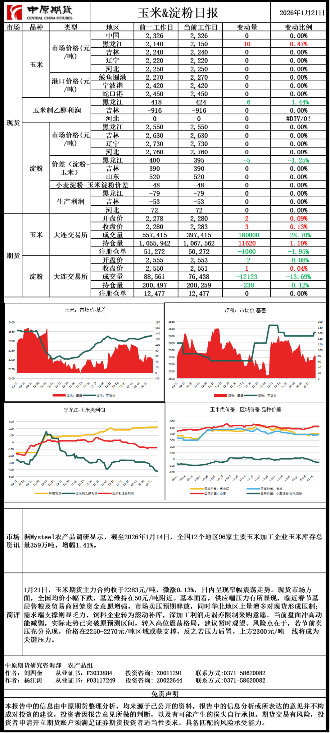 玉米淀粉日报20260121