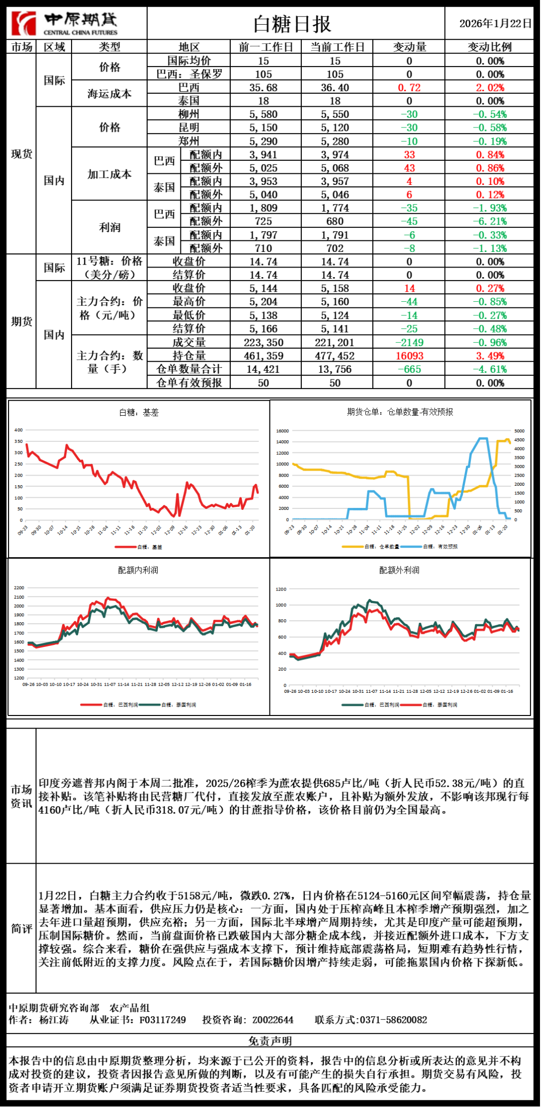 白糖日报20260122