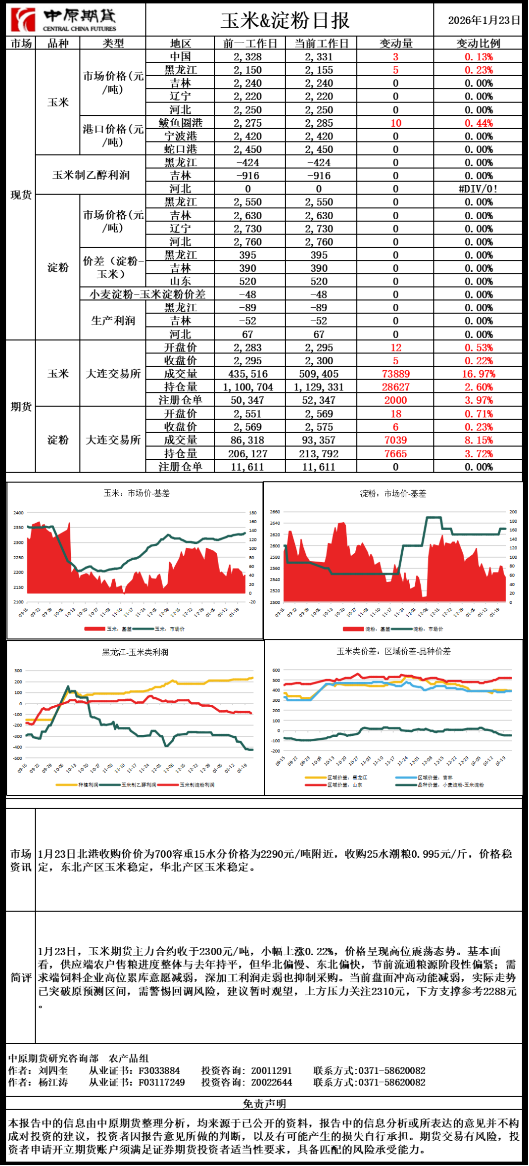 玉米淀粉日报20260123