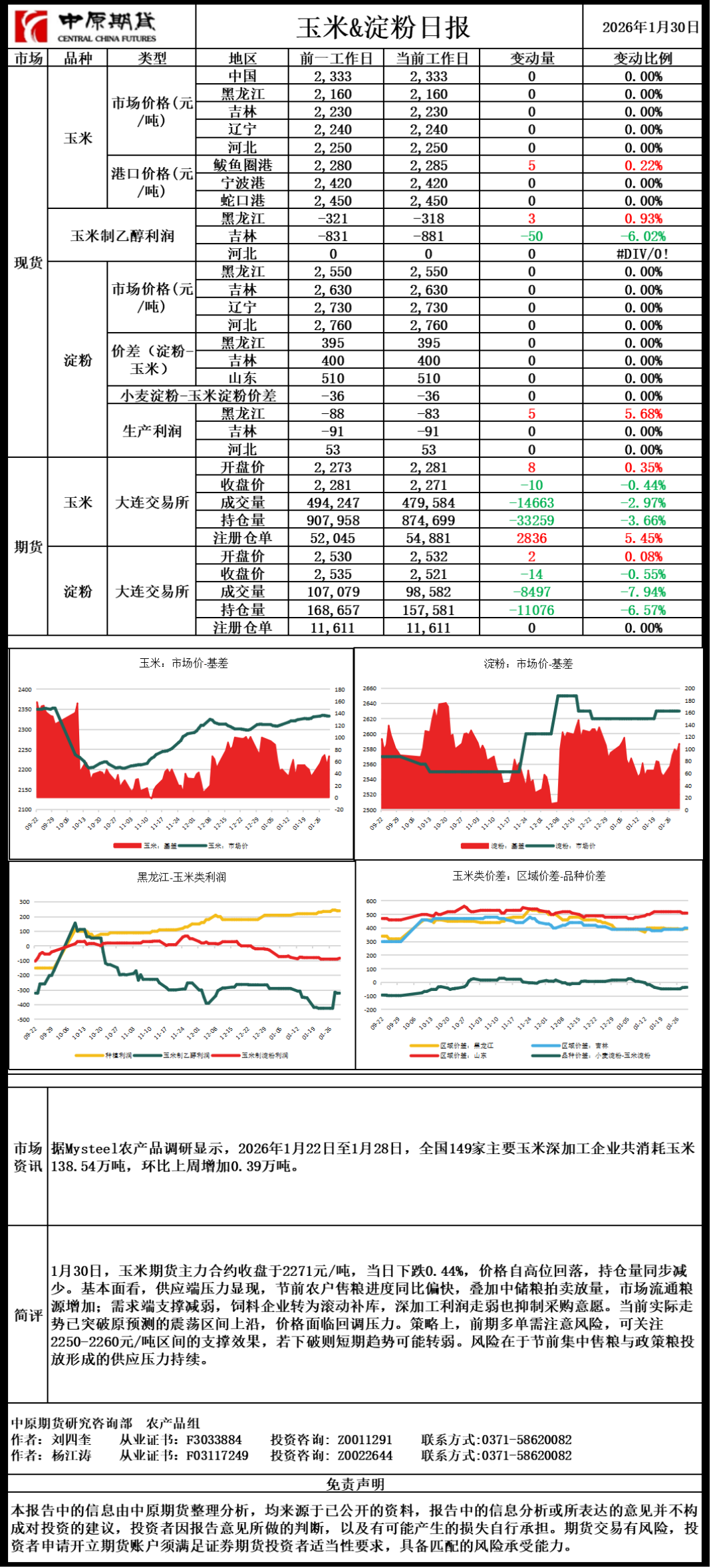 玉米淀粉日报20260130