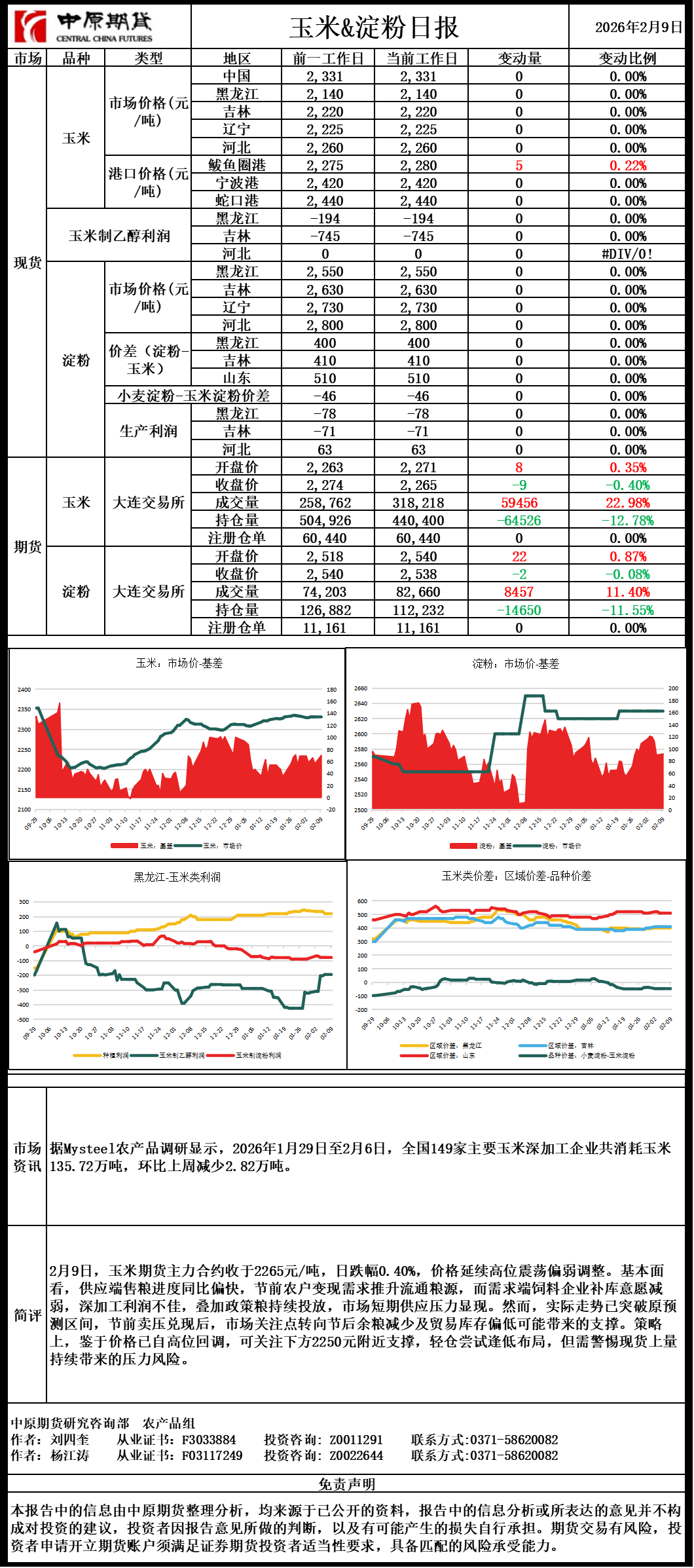 玉米淀粉日报20260209