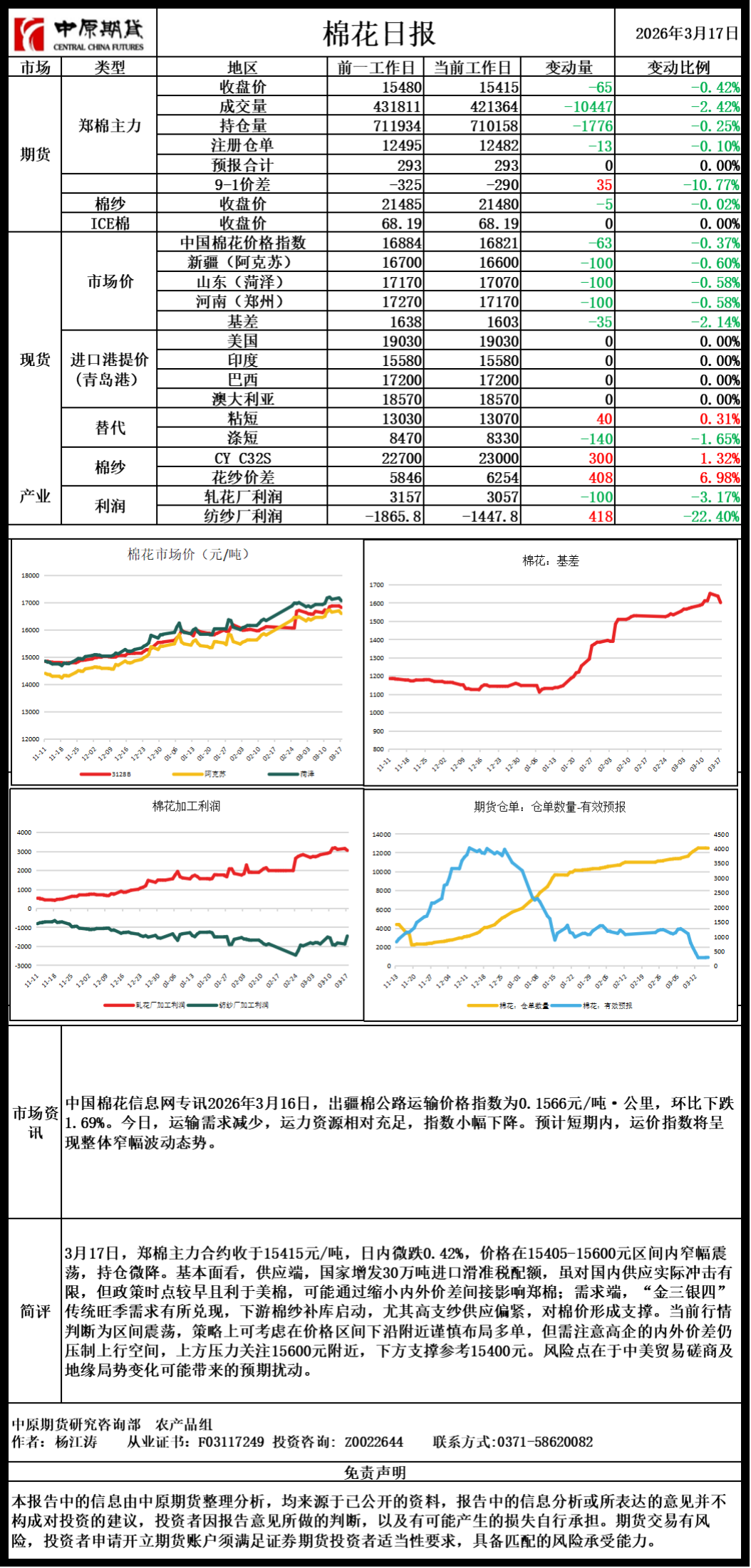 棉花日报20260317