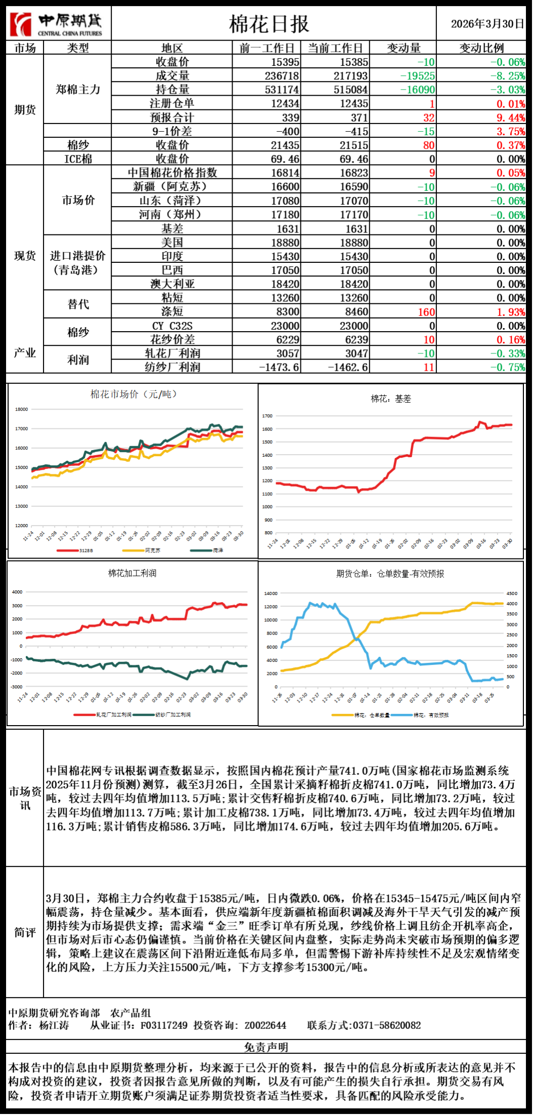 棉花日报20260330