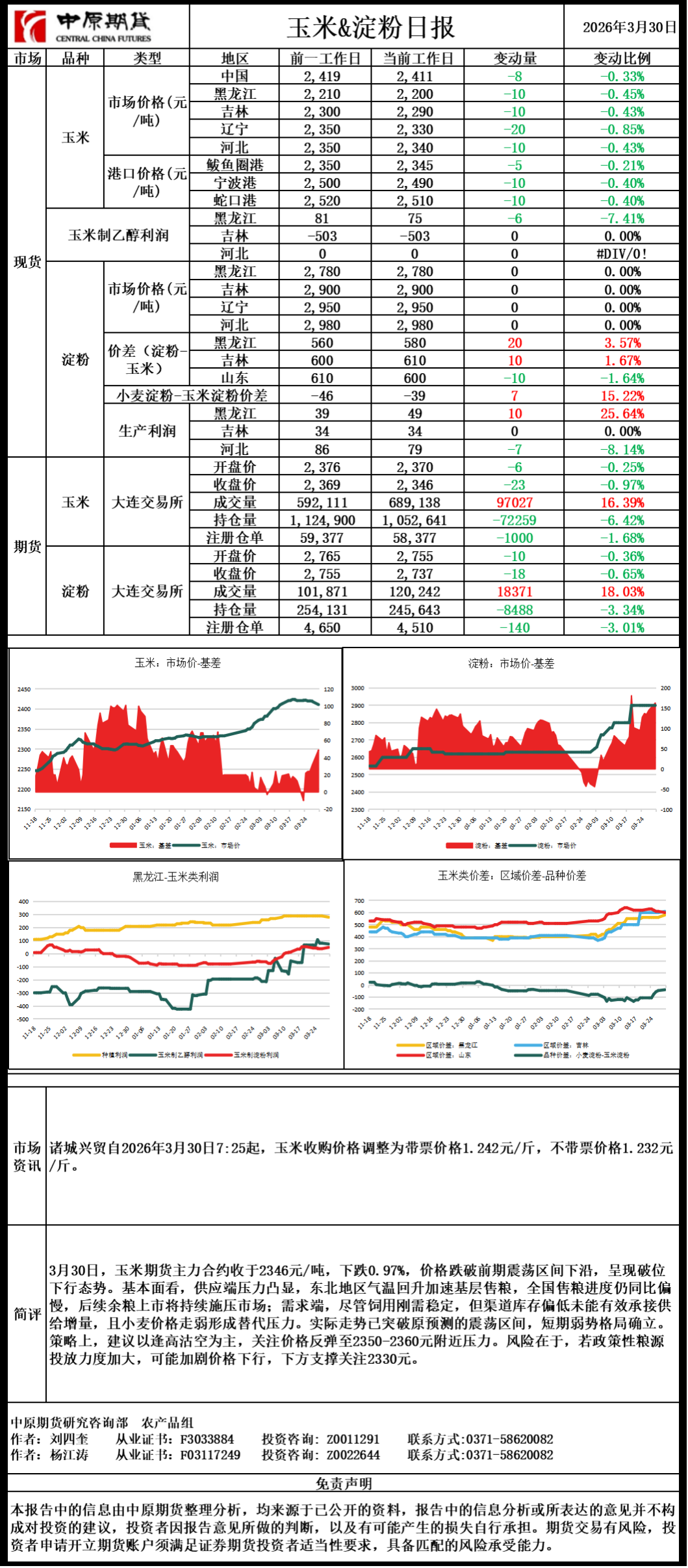 玉米淀粉日报20260330