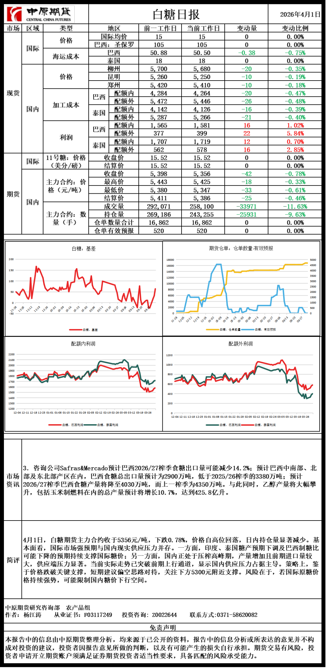 白糖日报20260401