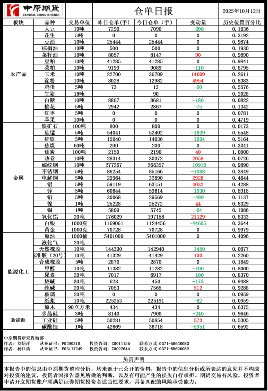 仓单日报20251013