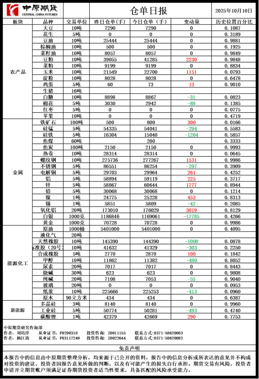 仓单日报20251010