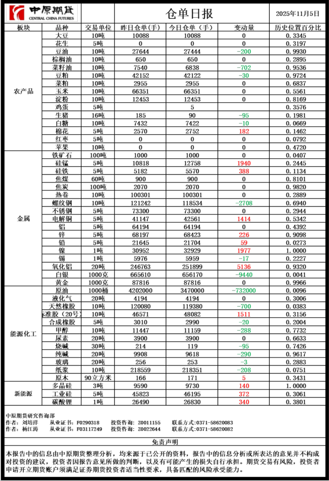仓单日报20251105