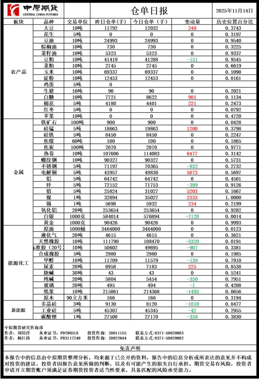 仓单日报20251114
