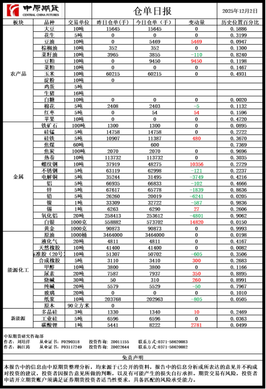 仓单日报20251202