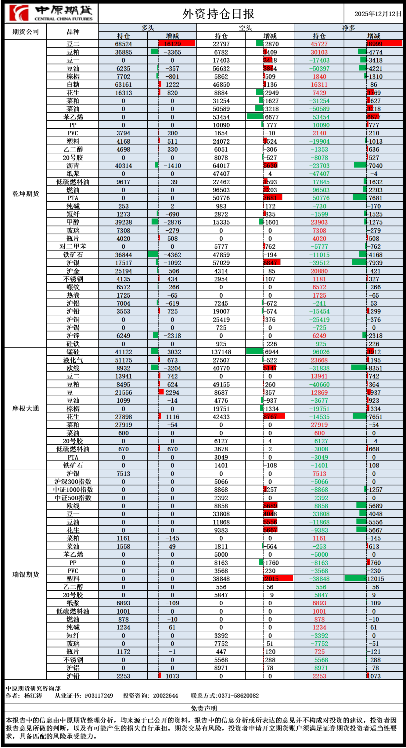 外资持仓日报20251212