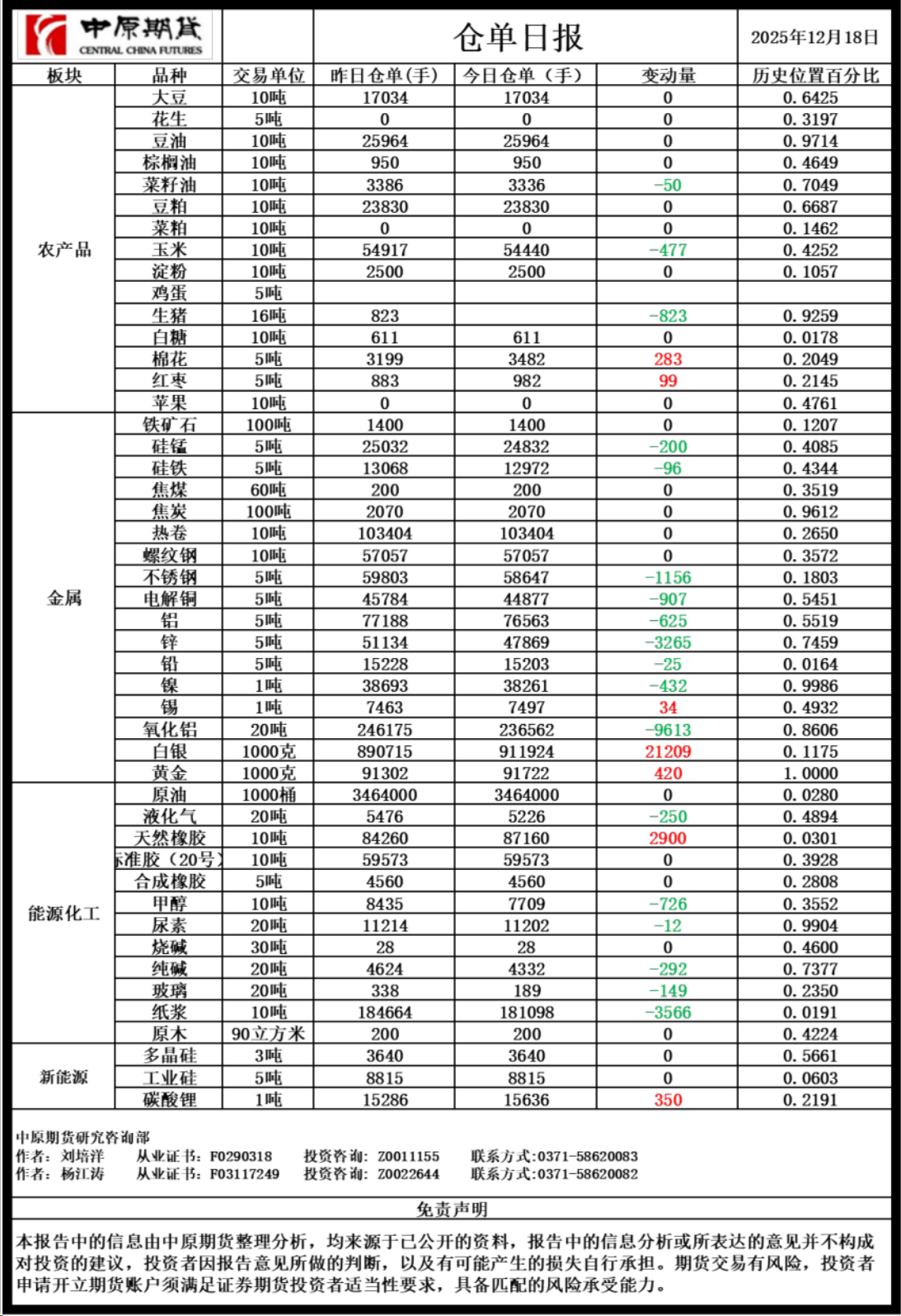 仓单日报20251218