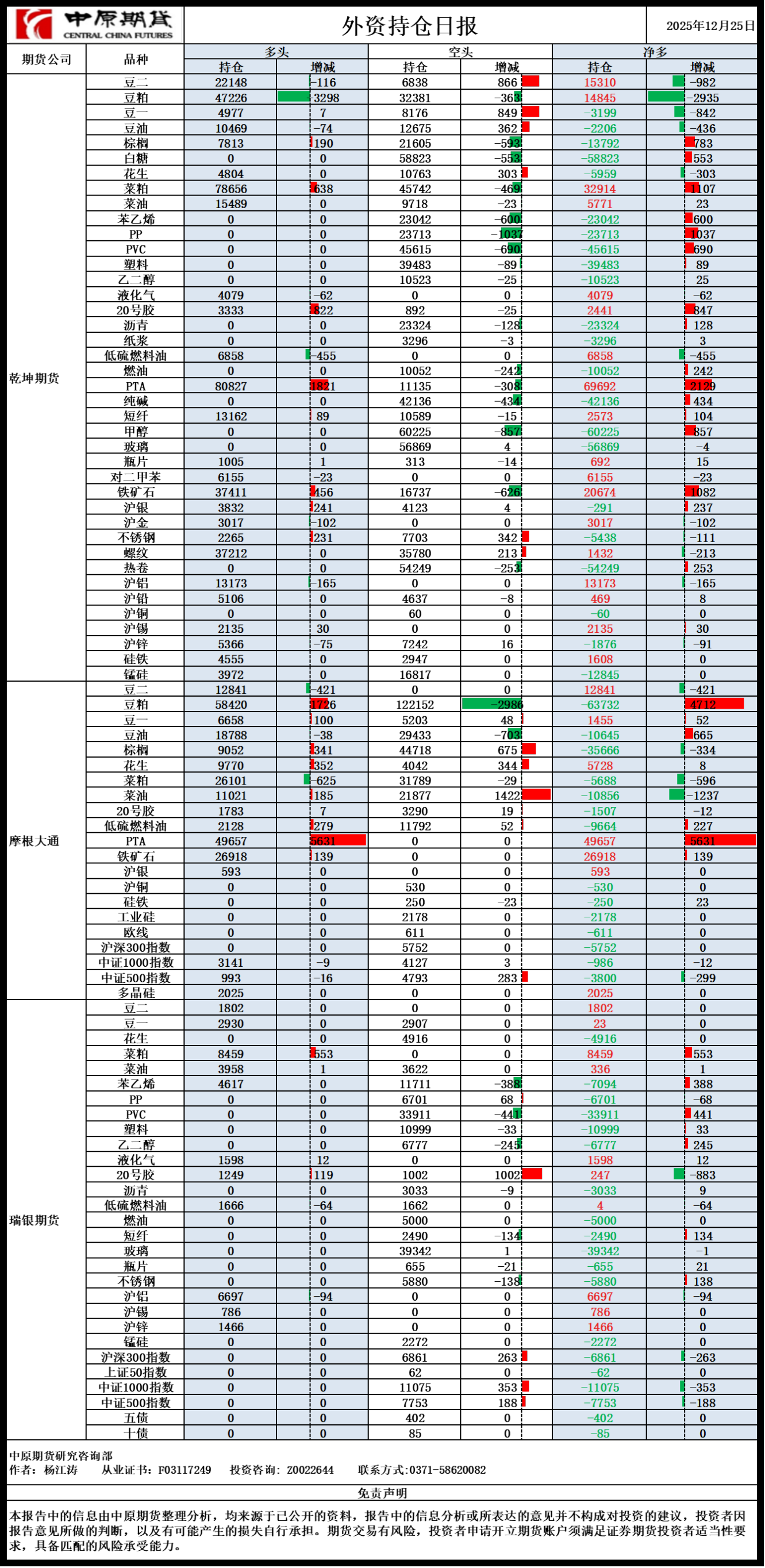 外资持仓日报20251225