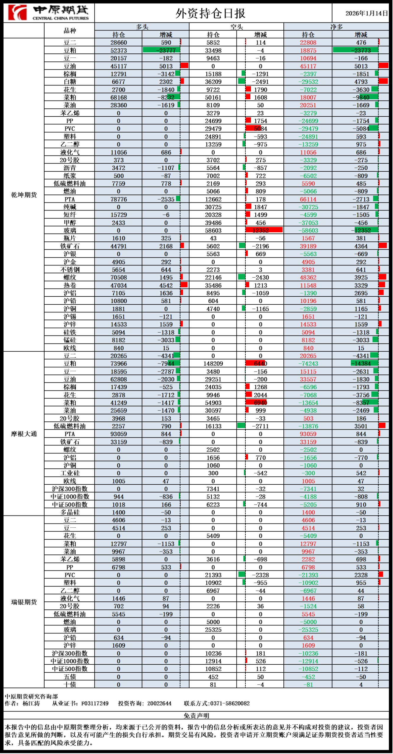 外资持仓日报20260114