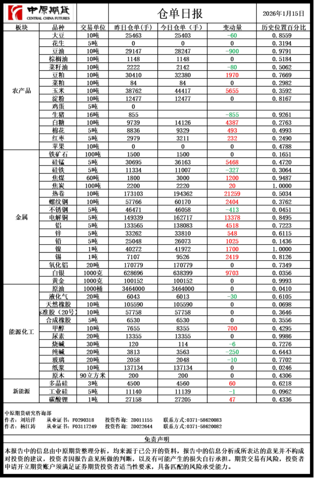 仓单日报20260115