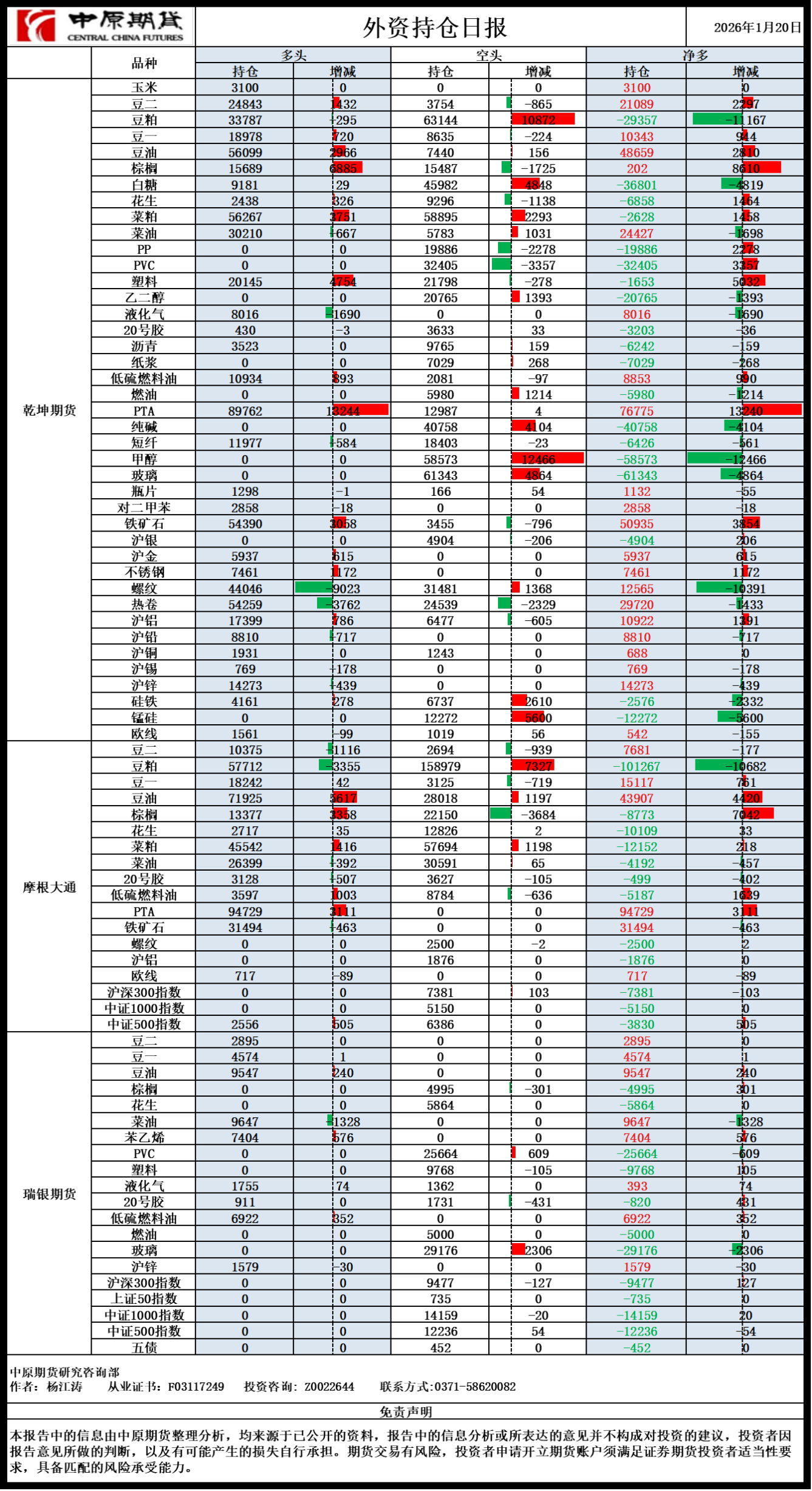 外资持仓日报20260120
