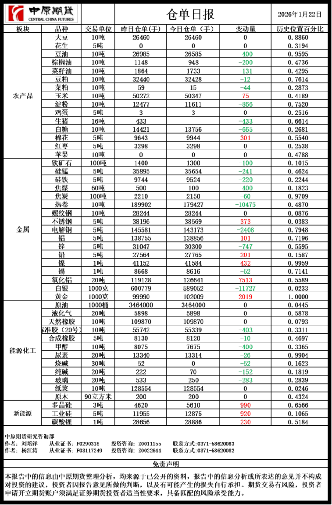 仓单日报20260122