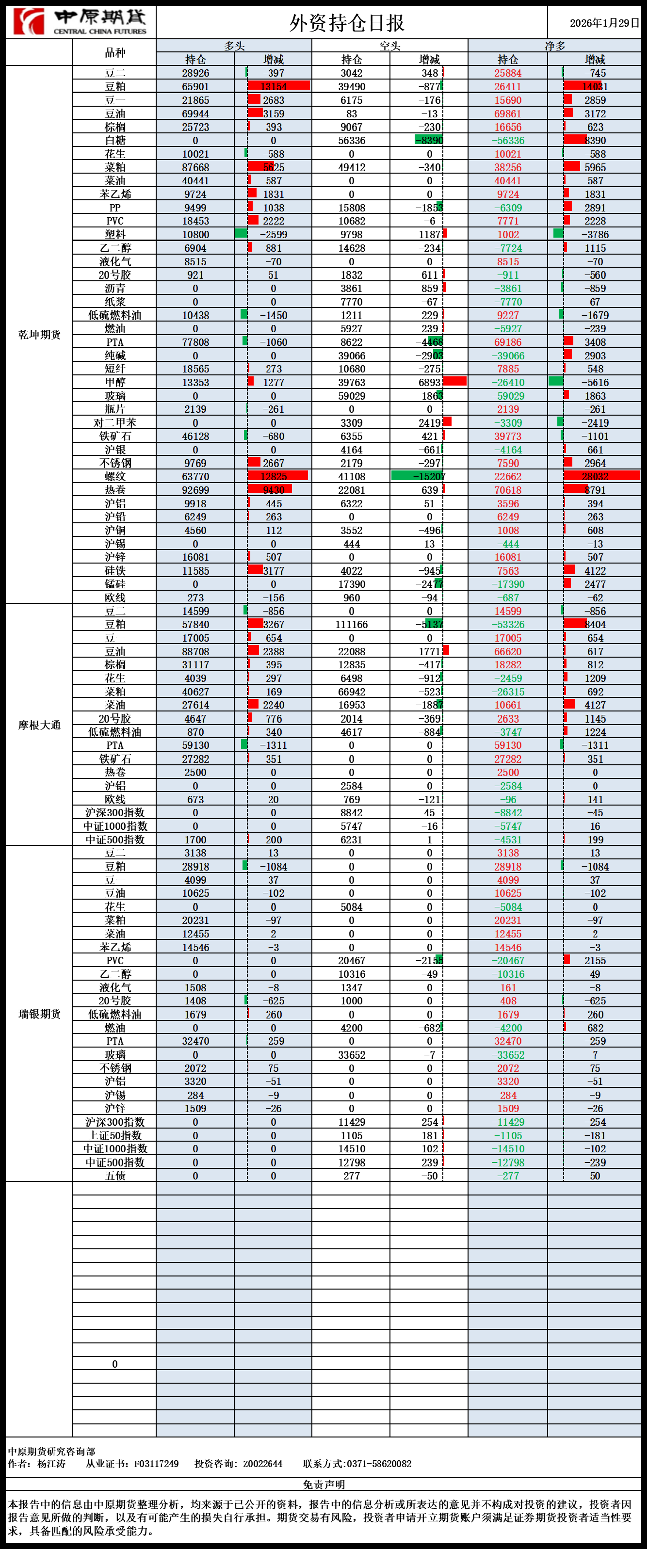 外资持仓日报20260129