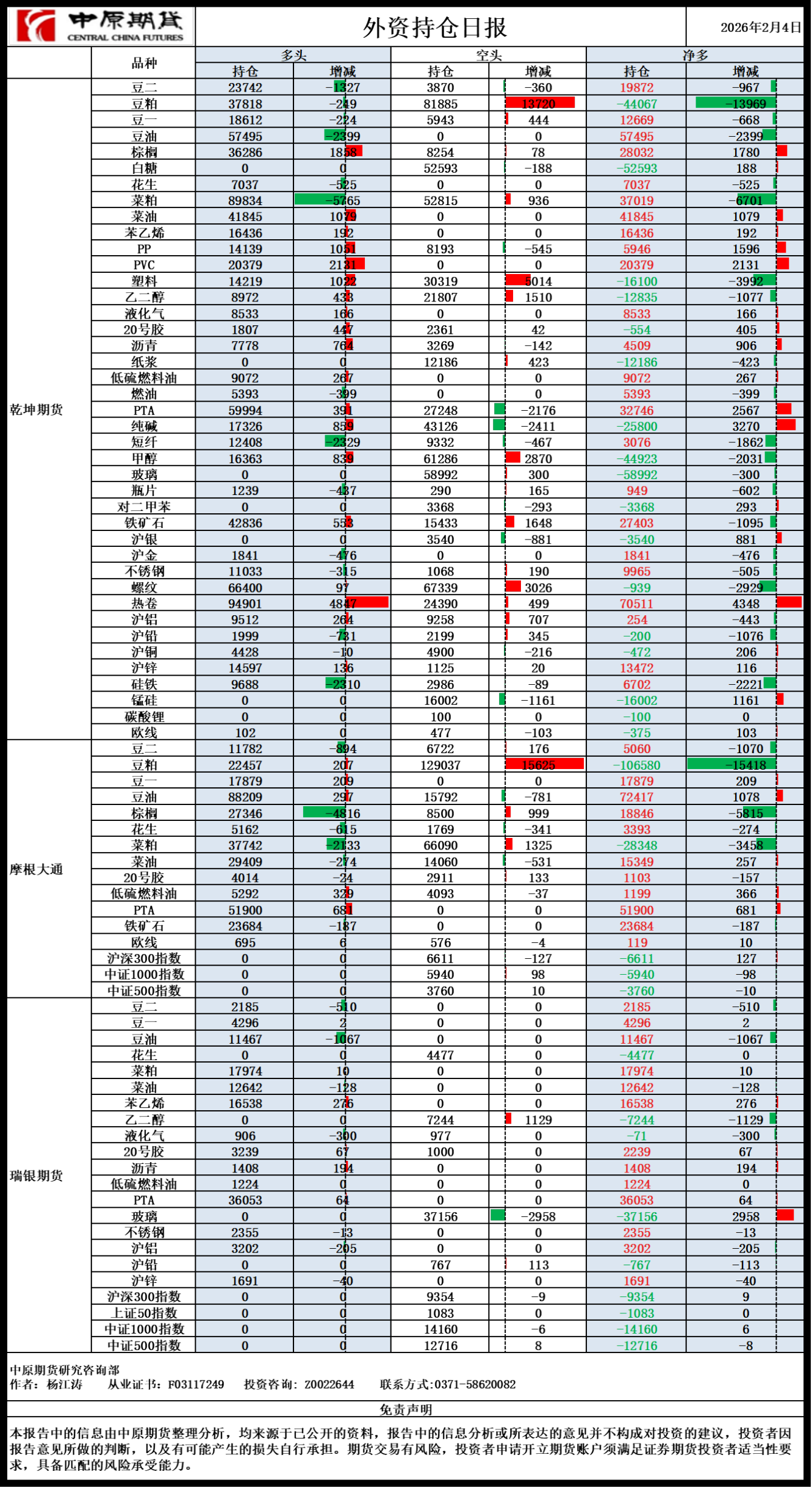 外资持仓日报20260204