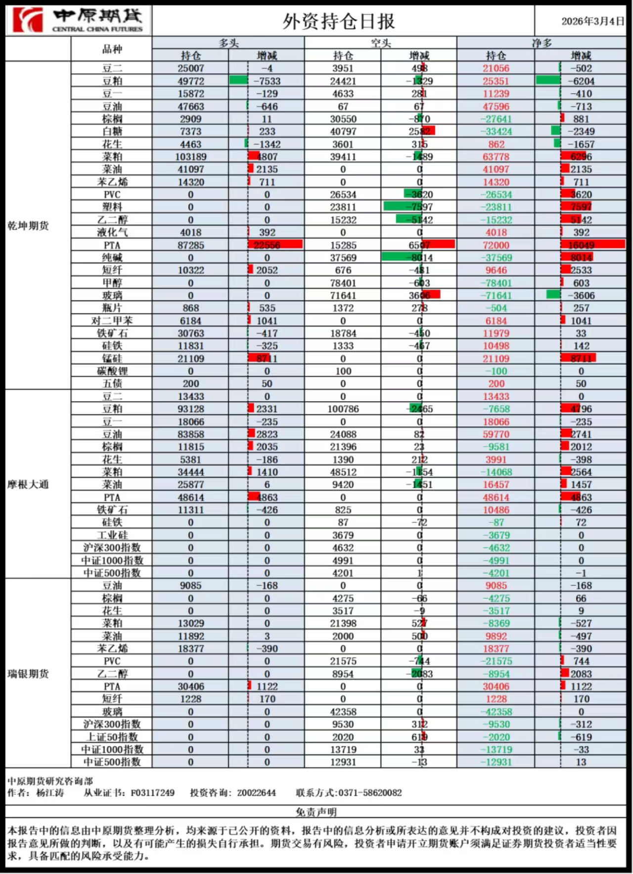 外资持仓日报20260304