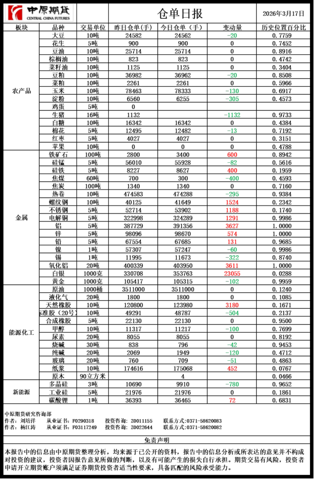 仓单日报20260317