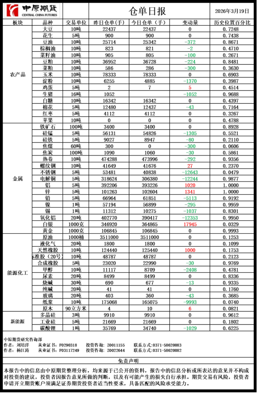 仓单日报20260319