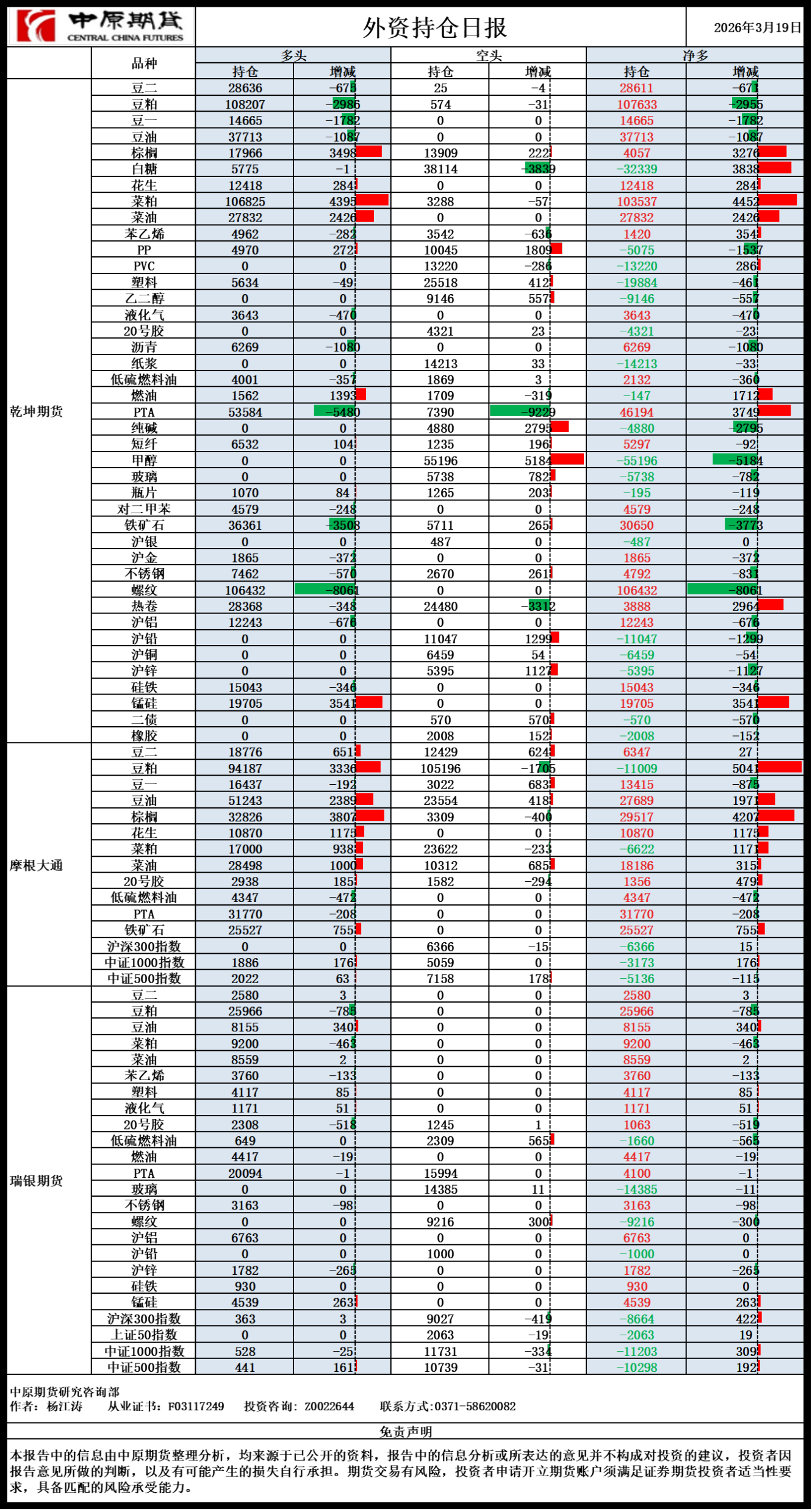 外资持仓日报20260319