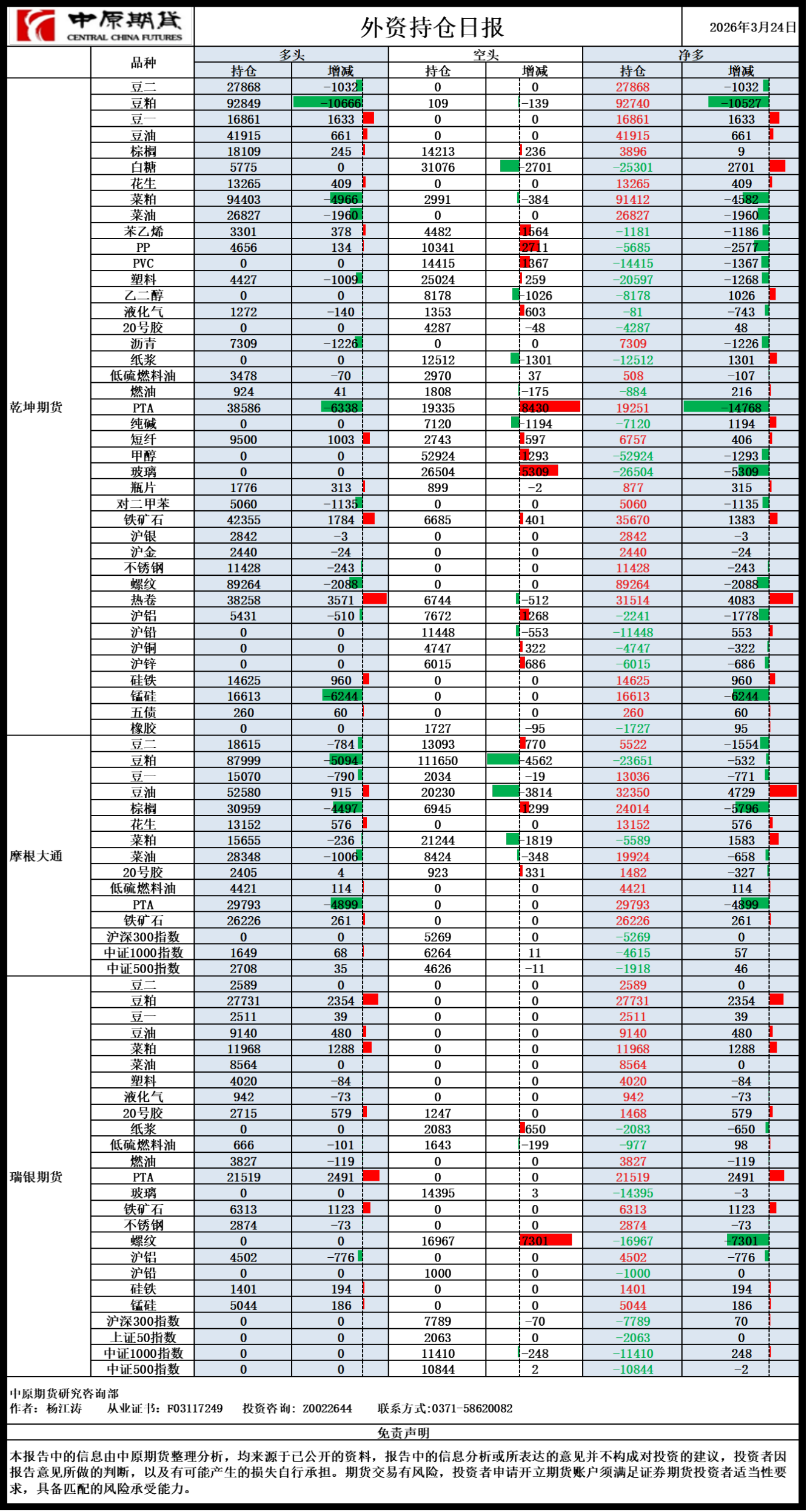 外资持仓日报20260324